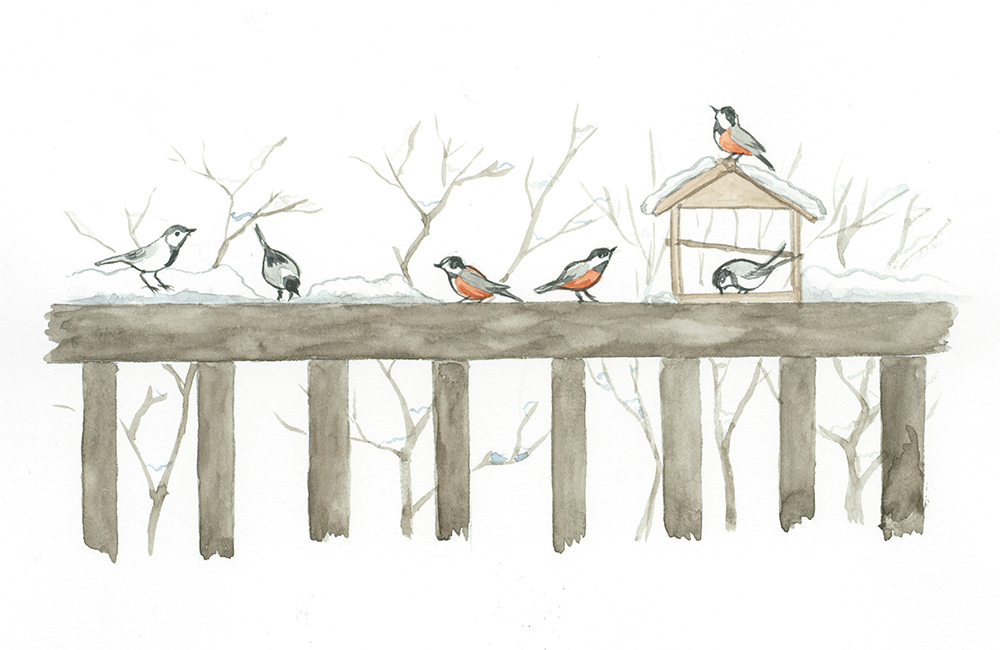 During the winter, when their food runs out, I leave a bird feeder filled with sunflower seeds for the birds.